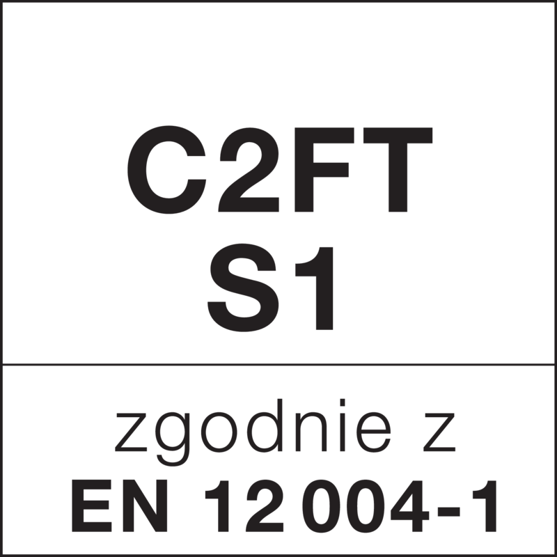 - Odpowiada klasie C2FT S1 wg normy PN-EN 12004.