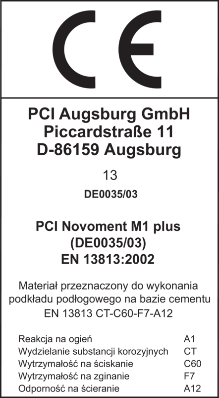 - Zgodna z PN-EN 13813: CT-C60-F7-A12
